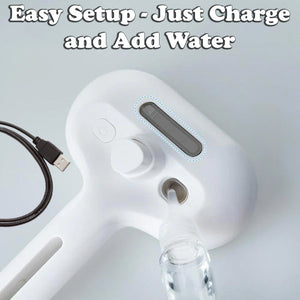 Simply fill the tank with water, click the button to spray mist, and start brushing away! Included is a USB charging cable for your convenience.